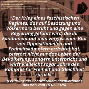 Dieser hier von uns veröffentlichte Text aus Frankreich ist nur eines von hunderten Beispielen im Land, warum und wie linke Gewerkschaften im Gegensatz zu denen in Österreich bedingungslos gegen Krieg sind und diesen Kampf mit dem gegen den Sozialabbau verbinden. Vergleichbare Texte gibt es auch von zahlreichen Gewerkschaften in Griechenland, Italien, Spanien, Portugal und mittlerweile …